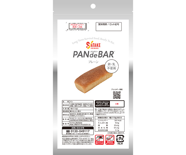 調理不要な長期保存パンです。保存期間は安心の5年間!1個で500kcal以上あり、貴重なエネルギー源となります。卵・乳・アーモンド・大豆不使用 ※開封後はお早めにお召し上がりください。