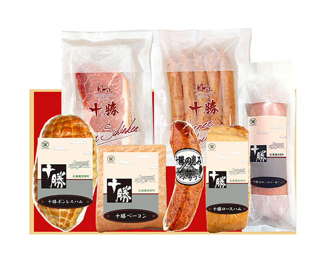 - 十勝ベーコン380g×1、恵みソフトサラミ90g×1、十勝ボロニアソーセージ250g×1、十勝ポークウィンナー135g×1、十勝モモ生ハム40g×1、十勝ボンレスハム400g×1、十勝ロースハム300g×1