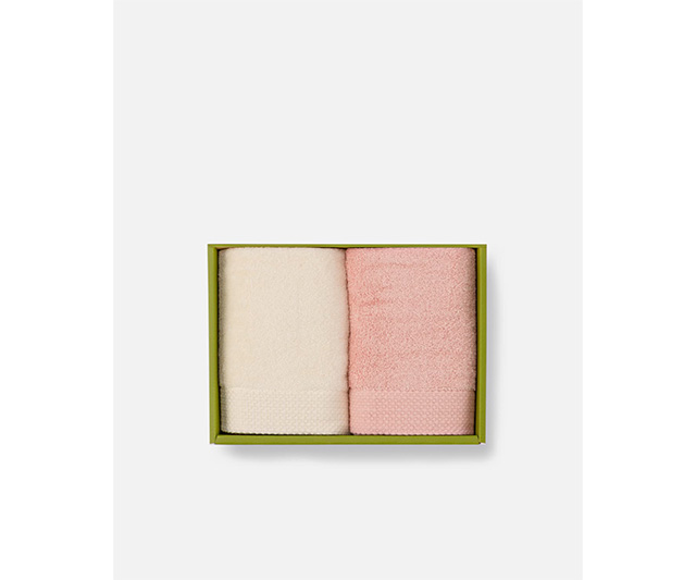 軽やかな甘撚りフェイスタオル2枚セット 生成&ペールピンク