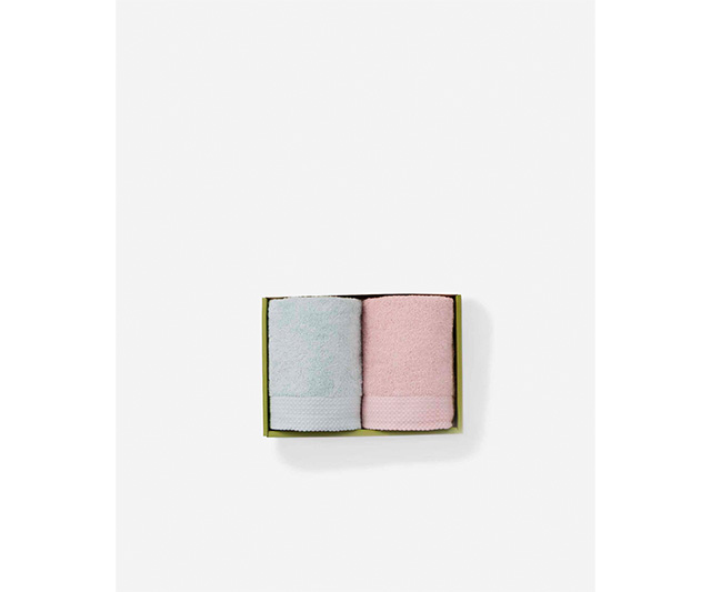 軽やかな甘撚りフェイスタオル2枚セット ミントブルー&ペールピンク