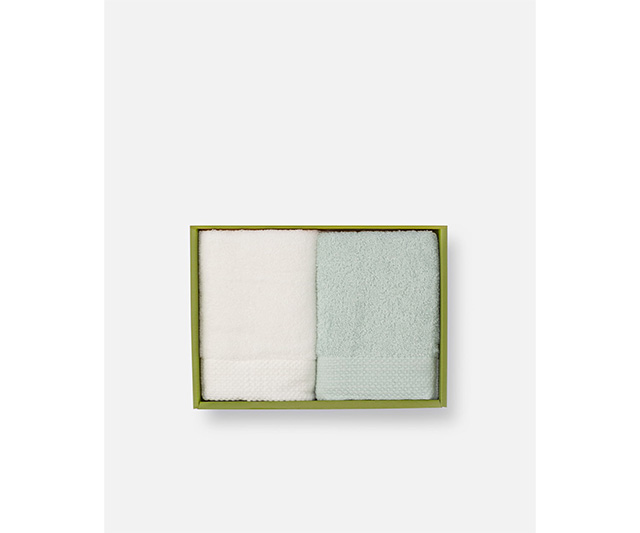 軽やかな甘撚りフェイスタオル2枚セット ホワイト&ミントブルー