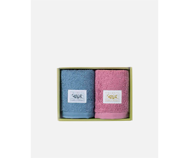 超甘撚りフェイスタオル2枚セット ブルーグレー&ローズ
