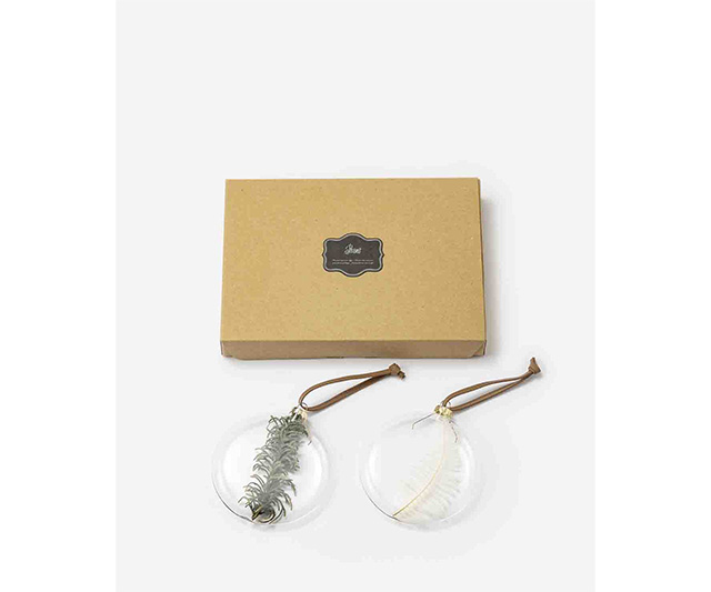 平たいガラスに、ドライフラワーやプリザーブドフラワーをアレンジしたオーナメントのセット。透き通ったガラスの美しさとナチュラルな植物のコントラストが印象的で、お部屋のいろいろな場所に気軽に飾ることができるおしゃれなアイテムです。