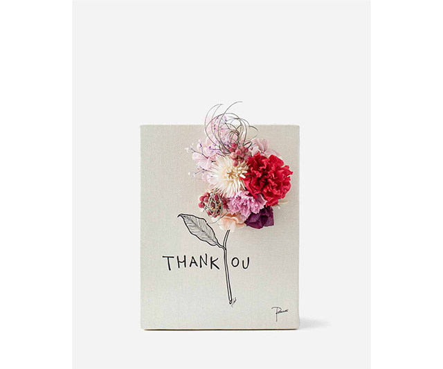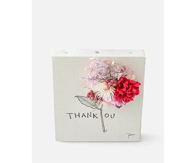 花贈りの新しいカタチ「レターフラワー」は、キャンバス地に描かれたイラストとフラワーのコラボレーションが美しい花の手紙です。感謝の気持ちをレターフラワーに乗せてお届けします。壁に立てかけたりイーゼルや額に飾ったりと、空間のアクセントとしても楽しめます。キャンパス地いっぱいにお花が飾り付けられた華やかな作品です。