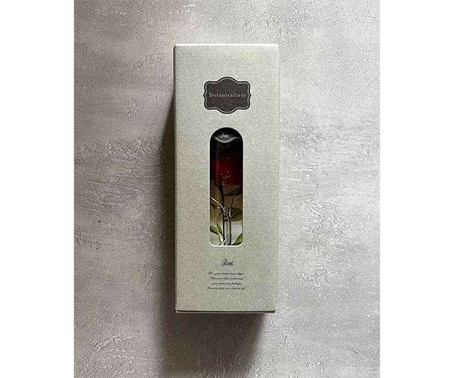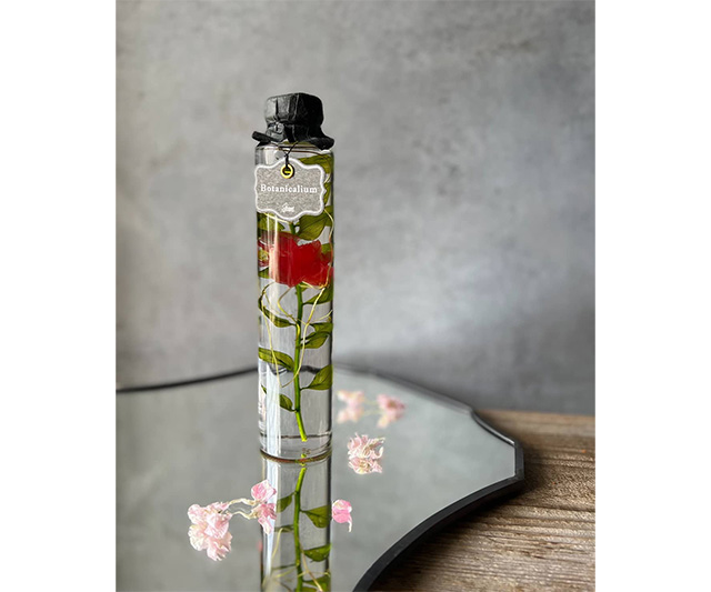 植物の美しさを、液体の中に閉じ込めたパコスのボタニカリウム。液体の中を、ゆらりゆらりと浮かぶ花は角度や光の加減でさまざまな表情を見せてくれます。「感謝」の花言葉を持つピンクのカーネーションは、大切な人へのギフトにおすすめ。お家の中のお気に入りの場所に飾って、インテリアとしてお楽しみいただけます。