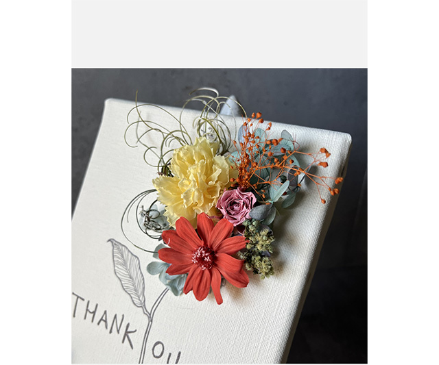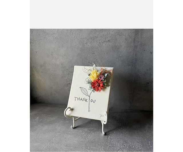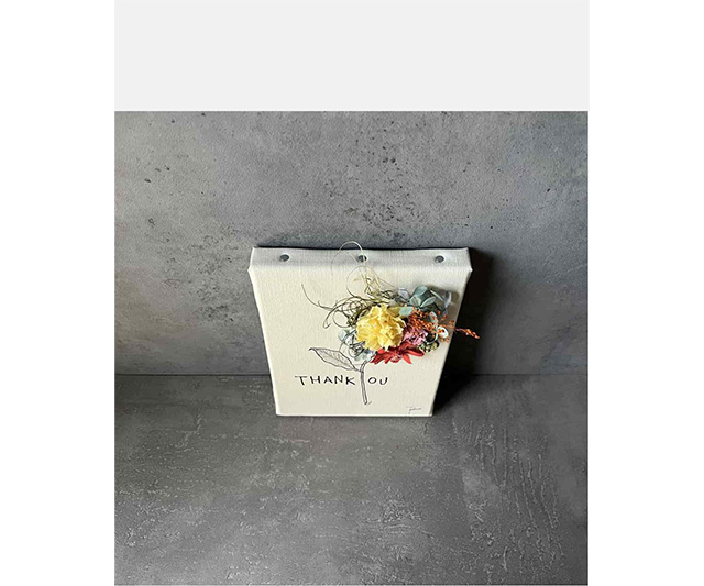 花贈りの新しいカタチ「レターフラワー」は、キャンバス地に描かれたイラストとフラワーのコラボレーションが美しい花の手紙です。感謝の気持ちをレターフラワーに乗せてお届けします。壁に立てかけたりイーゼルや額に飾ったりと、空間のアクセントとしても楽しめます。キャンパス地いっぱいにお花が飾り付けられた華やかな作品です。”感謝”の花言葉を持つカーネーションは、プレゼントにおすすめです。