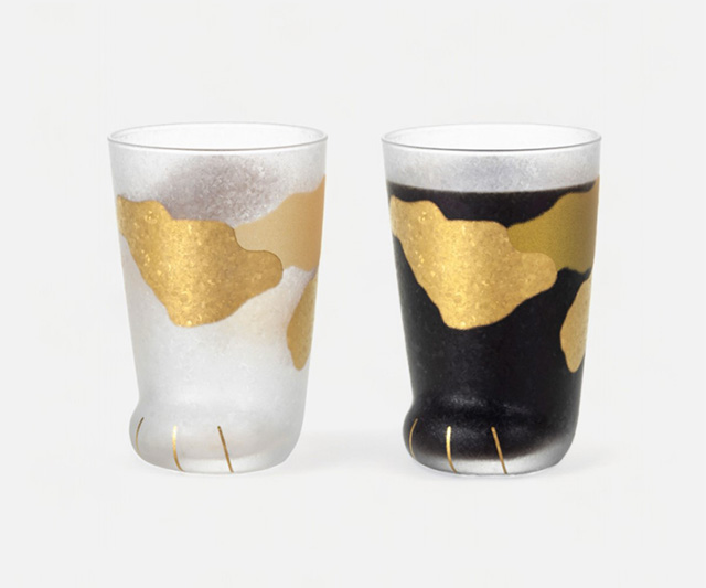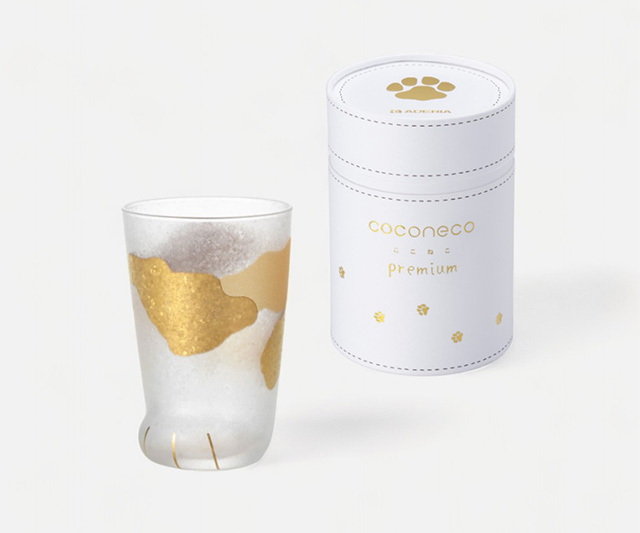 きらびやかなグラスにねこの模様を金で施しました、アイスコーヒーやコーラなど重厚感のある飲み物を入れるとより一層puremiumなグラスになります。