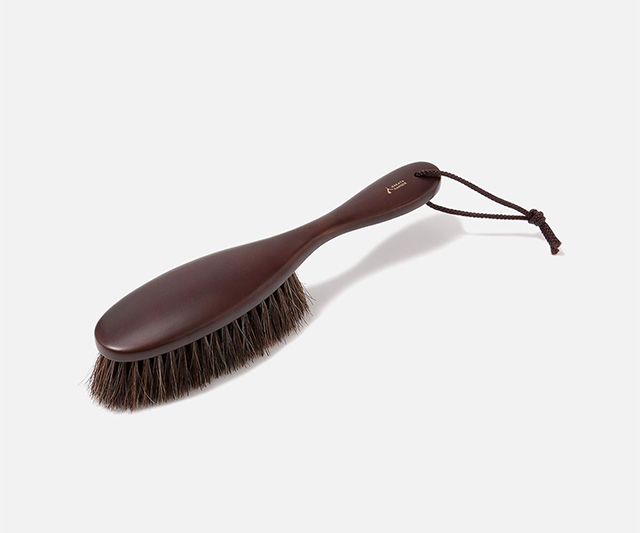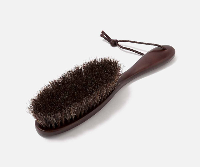 華やかさと気品を感じる色合いと優雅な使い心地が特徴です。天然の馬毛はキメが細かく柔らかいのでブラッシングしやすく、リネンやカシミヤなどデリケートな生地のものまで幅広くお使い頂けます。