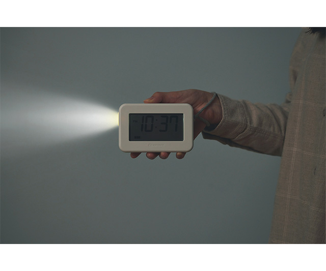 普段はランタン機能付きデジタル時計として使え、もしもの停電時には自動で点灯する「ランタンクロック」。バックライト点灯機能により、昼夜問わず時刻を確認できます。停電時は暖色LEDのランタンが即時点灯し、弱点灯で最大約3日間点灯を維持します。懐中電灯機能やIP44相当の防塵・防水性能、手のひらサイズでありながらストラップ付きのため、災害時やキャンプ、夜間の授乳など幅広いシーンで心強く活躍します。