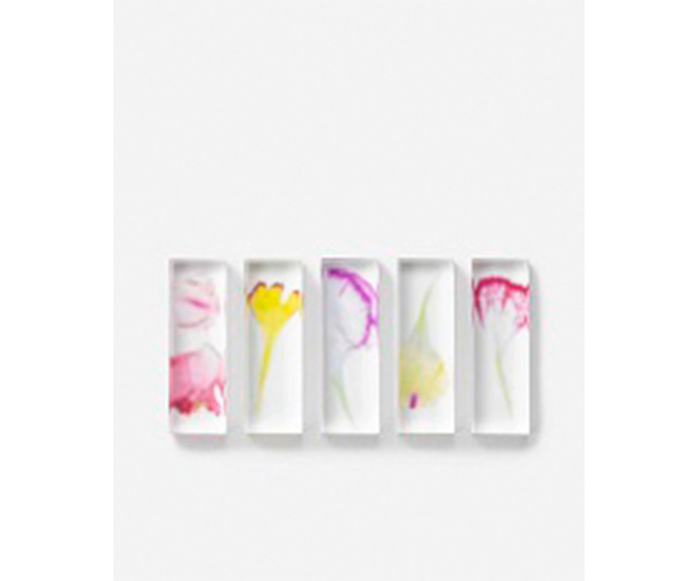 クリアなアクリル素材に植物を閉じ込めたような、いきいきとした押花シリーズ。草花の緑や、カーネーションの花びらが映える箸置き5個セットです。カーネーションは、花びらを1点ずつ押し花にした華やかなデザイン。鮮やかな緑は、食卓にナチュラルで健康的な印象をプラスしてくれます。