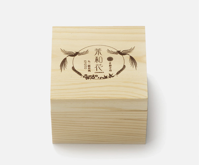 E木箱側面に「CHAWAKA」のロゴ文字(縦:約14mm, 横:約26mm)が入ります。