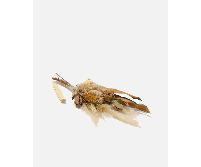 「聖なる木」と言われる南米産の神秘の香木「パロサント(Palo、Santo)」を使用したドライフラワーのブーケ。お部屋に飾るだけでもパロサントの甘い香りが楽しめます。ドライフラワーの色味、ブーケとしてのバランスがインテリアとして秀逸です。ブーケと幸福を呼び込むパロサントの組み合わせは、新築祝いにも最適!