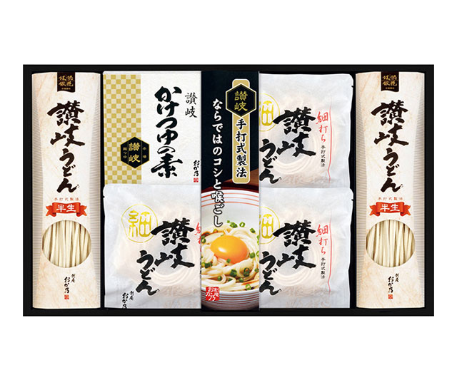 - 讃岐半生うどん180g×2、讃岐細打ちうどん80g×3、かけつゆの素(11.5g×5)×1