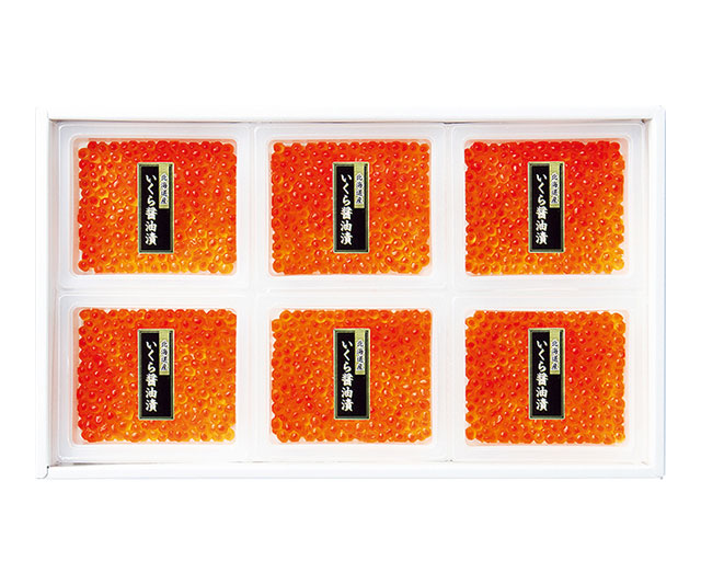 北海道産の鮭の卵を醤油ベースの調味液に漬け込みました。液切りをしっかりと施すことで、マイルドな醤油漬に仕上がっています。