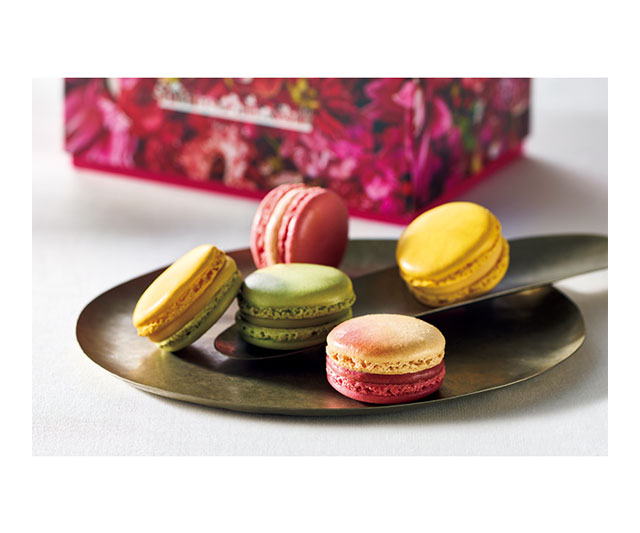 独創的な発想で芸術品とも称されるスイーツをお届けする〈ピエール・エルメ・パリ〉。その代名詞ともいえるマカロンを「アンフィニマン フレーズ」「シークヮーサー」など、5 種のセットでご用意しました。