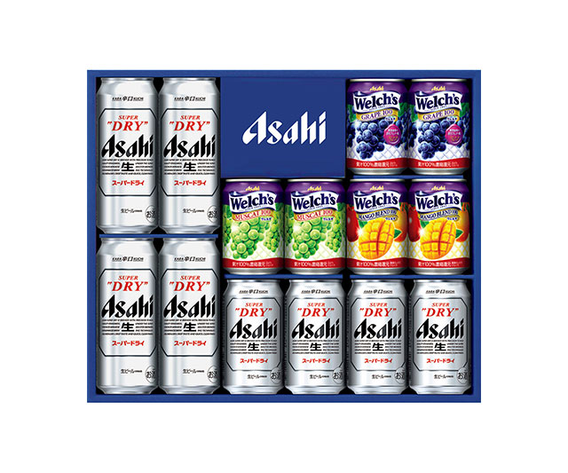 - スーパードライ350ml・500ml×各4、ウェルチ(コンコードグレープ100・マスカット100・マンゴーブレンド100各280g×各2)