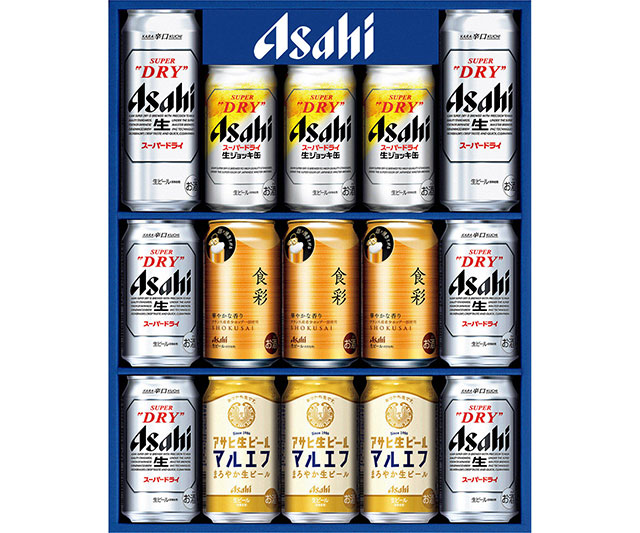 - スーパードライ350ml×4・500ml×2、スーパードライ生ジョッキ缶・アサヒ食彩各340ml×各3、アサヒ生ビール350ml×3