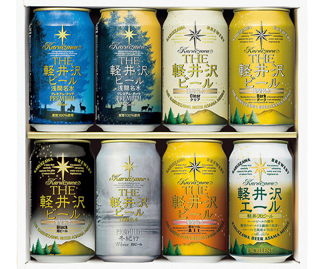 - プレミアムクリア・プレミアムダーク・クリア・ダーク・黒ビール・冬紀行プレミアム・赤ビール・軽井沢エール各350ml