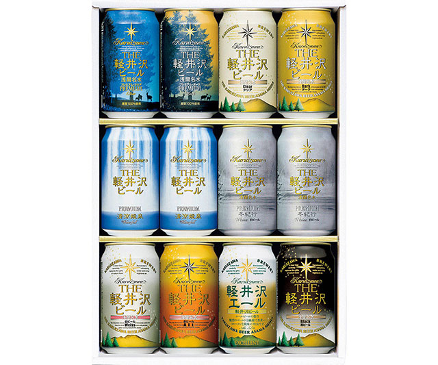- プレミアムクリア・プレミアムダーク・クリア・ダーク・白ビール・赤ビール・軽井沢エール・黒ビール×各1、清涼飛泉プレミアム・冬紀行プレミアム×各2、各350ml