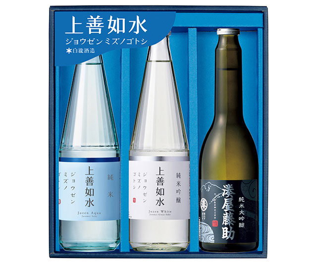 上善如水純米(辛口)・上善如水純米吟醸(やや辛口)各720ml、湊屋藤助純米大吟醸(中口)630ml