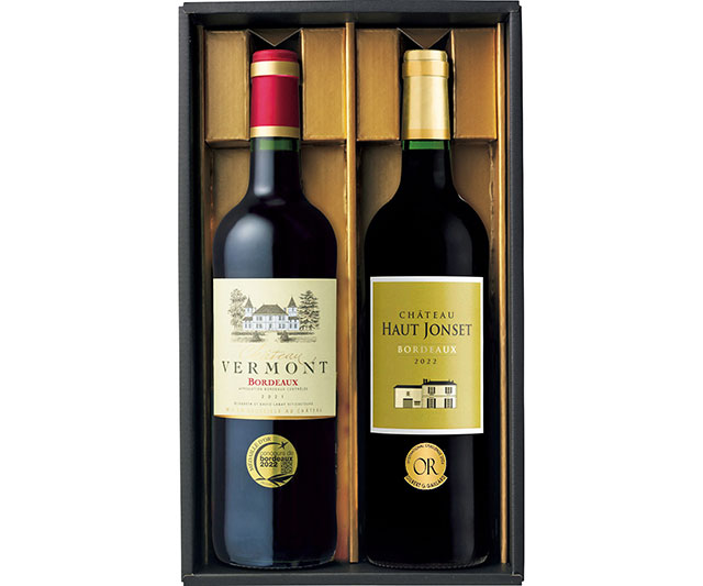 - シャトー ヴェルモン2021年(2022年ボルドーコンクール金賞/赤・やや重口)・シャトー オー ジョンセ2022年(2024年ジルベール&ガイヤール金賞/赤・やや重口)各750ml