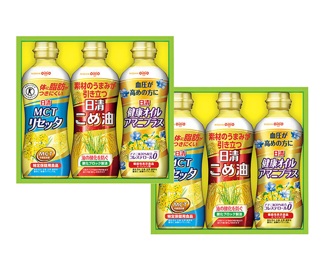 - こめ油・MCTリセッタ(特定保健用食品)・健康オイルアマニプラス(機能性表示食品/届出番号:A82)各350g×各2