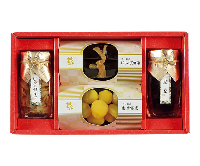 京都の料亭がつくるおせち料理の風情ある詰合せ。定番のにしん昆布巻や黒豆に加え、しめじ炊合せなど、伝統の技を活かした繊細な味わいをご賞味ください。