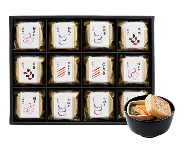 - 本格和風だしお吸物(紅ずわい蟹×2、松阪牛×4)、本格和風だしお味噌汁(桜えび・黒豚×各3)