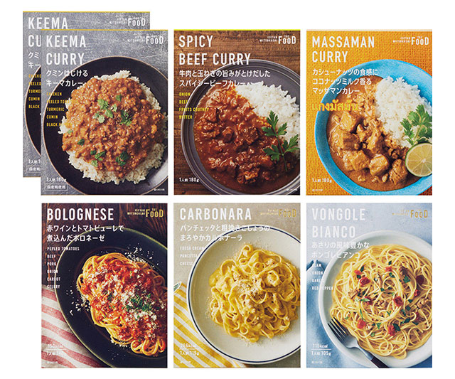 - キーマカレー180g×2、スパイシービーフカレー180g・マッサマンカレー180g・ボロネーゼ140g・カルボナーラ115g・ボンゴレ105g×各1
