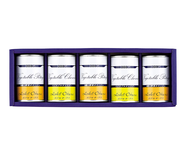 - 8種の野菜ポタージュ×3、ベジタブルチャウダー×2、各160g/プルトップ缶