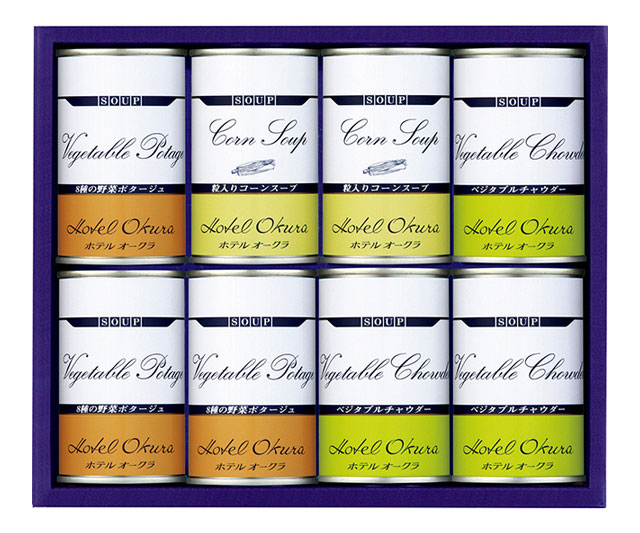- 粒入りコーンスープ×2、8種の野菜ポタージュ・ベジタブルチャウダー×各3、各160g/プルトップ缶