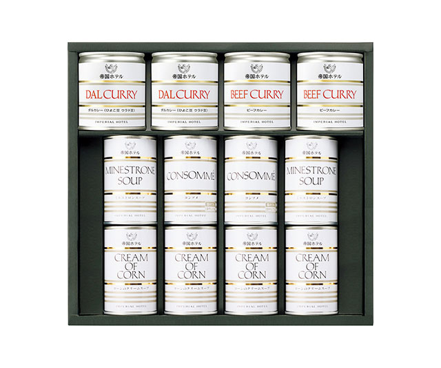 - コーンのクリームスープ×4、ミネストロンスープ・コンソメ×各2、各160g、ビーフカレー190g・ダルカレー(豆のカレー)180g×各2/プルトップ缶