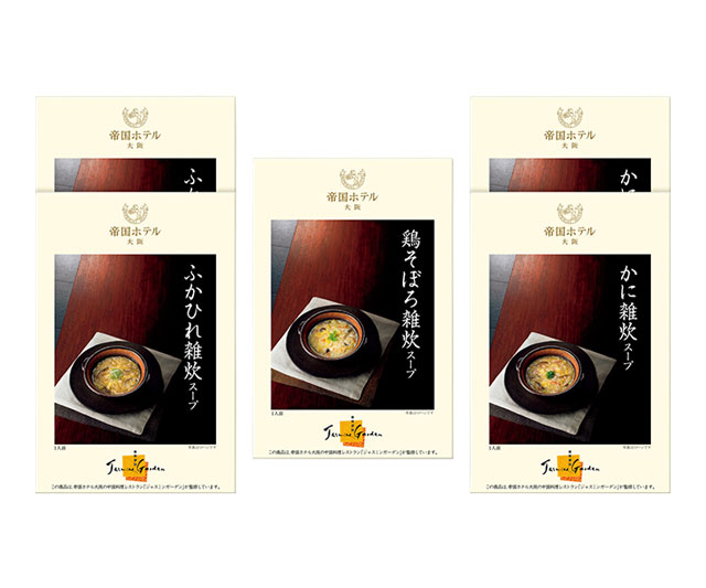 - ふかひれ雑炊スープの素・かに雑炊スープの素×各2、鶏そぼろ雑炊スープの素×1、各230g
