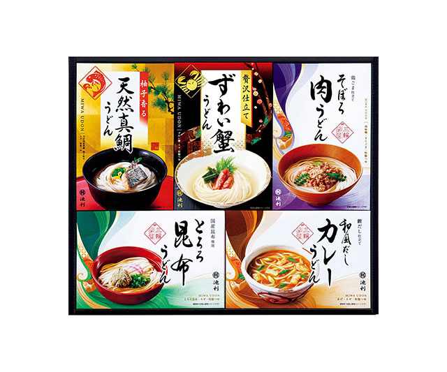 - ずわい蟹うどん・天然真鯛うどん・そぼろ肉うどん・和風だしカレーうどん・とろろ昆布うどん各60g(麺)