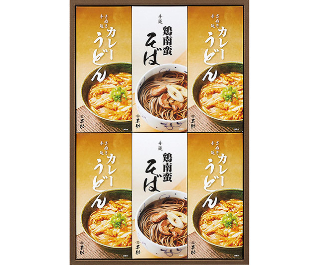モチモチの食感が魅力の手延べ麺の詰合せです。カレーうどんと鶏南蛮そばは体を温めてくれる冬にぴったりの贈り物。だしの風味豊かなレトルトのつゆで、手軽にお召しあがりください。