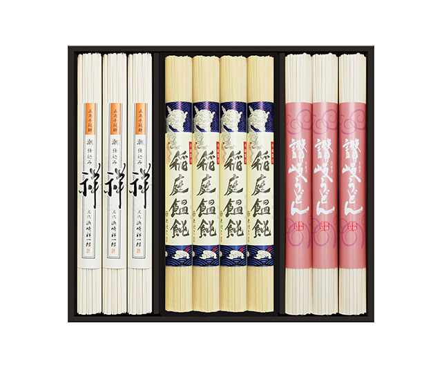 稲庭うどん90g×4、讃岐うどん・五島うどん各100g×各3