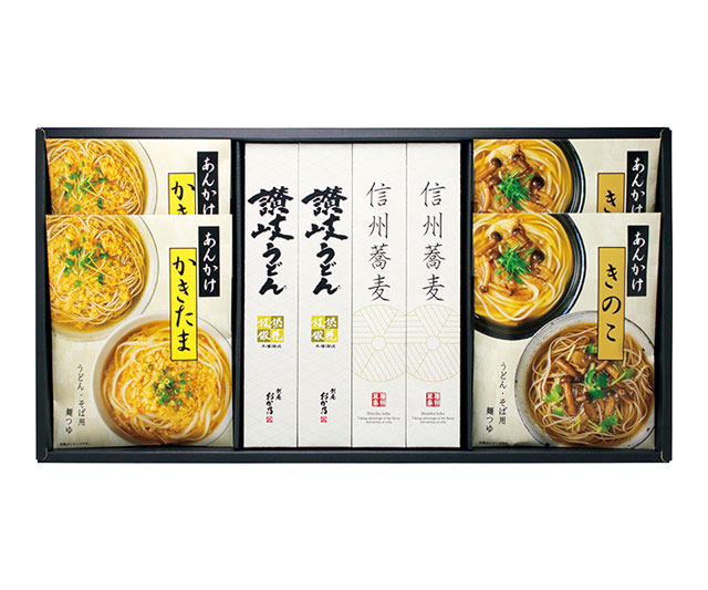 - 讃岐うどん・信州戸隠そば各80g×各2、あんかけ(かきたま・きのこ各200g×各2)