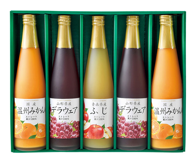- 山形県産デラウェア・国産温州みかん×各2、青森県産ふじ×1、各500ml