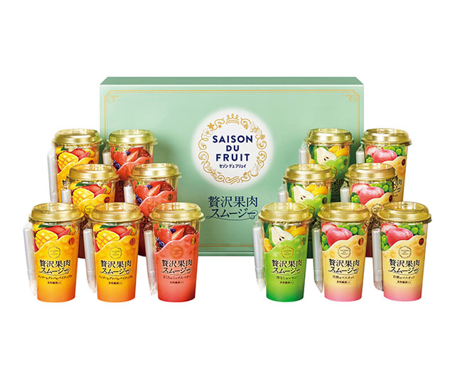 - マンゴー&グァバ&パイナップル・白桃&マスカット×各4、ざくろ&ミックスベリー・洋なし&レモン×各3、各180g