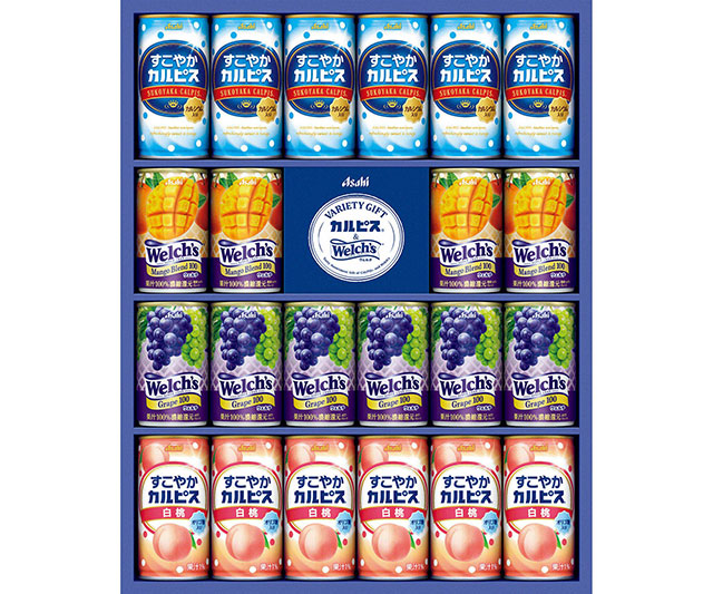 - すこやかカルピス・すこやかカルピス白桃各190g×各6、ウェルチグレープ×6、ウェルチマンゴーブレンド×4、各160g/缶