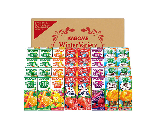 - 野菜生活100(オリジナル×8、ベリーサラダ・マンゴーサラダ×各4、各200ml、有田みかんミックス195ml×8)、冬のフルーツこれ一本200ml×8/紙容器