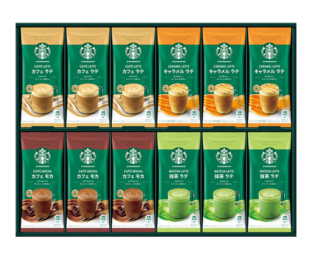 - プレミアムミックス(カフェラテ18g・キャラメルラテ23g・抹茶ラテ24g・カフェモカ22g×各6)
