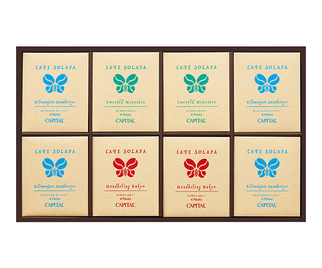 - キリマンジャロスノーベリー×4、エメラルドマウンテン・マンデリンルビー×各2、各10g×各4