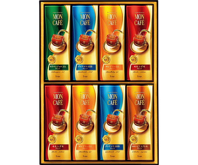 コロンビアスプレモブレンド・キリマンジャロAAブレンド各8g×各5、モカシダモブレンド・マンデリン G1 ブレンド各8g×各10、グァテマラSHBブレンド7.5g×10