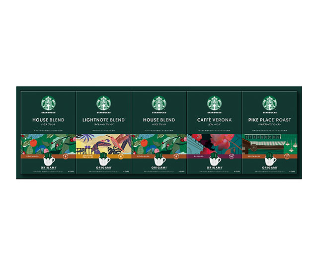 - ライトノートブレンド・パイクプレイスロースト・カフェベロナ×各1、ハウスブレンド×2、各9g×各4