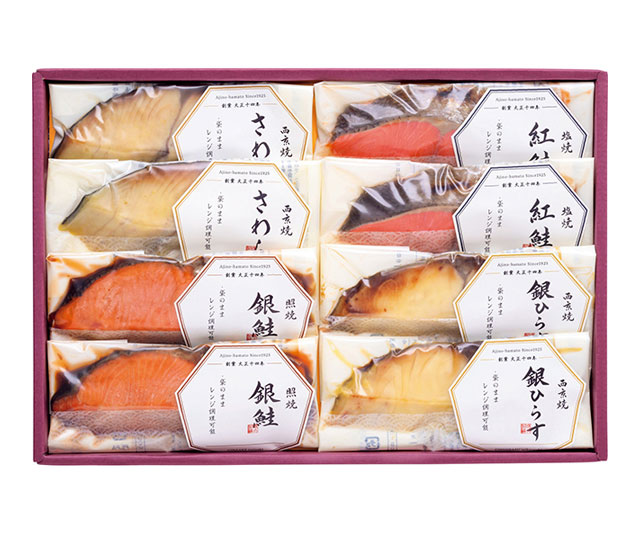 さわら西京焼・銀ひらす西京焼・紅鮭塩焼・銀鮭照焼×各2