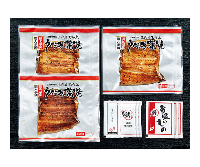 - 手焼き浜名湖鰻蒲焼75g・たれ・山椒・吸物×各3