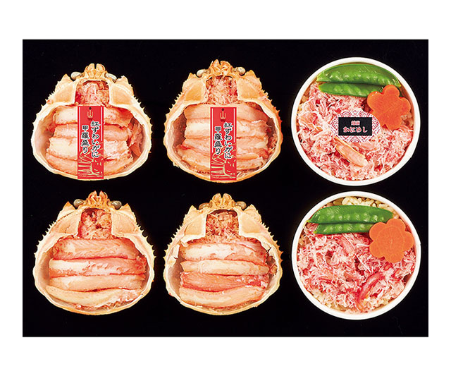 - 紅ずわい蟹甲羅盛70g×4、蟹めし120g×2