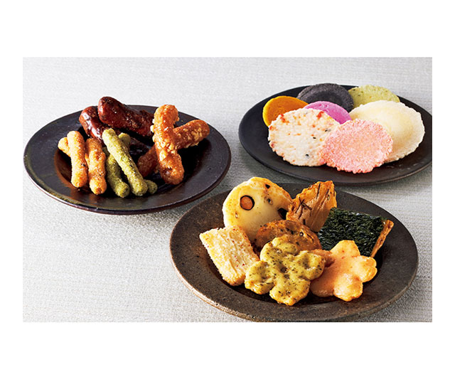 京都の風雅を映し、繊細な味わいの米菓をつくり続ける〈京都 祇園萩月〉。上品な味わいのあられや優しい甘みのかりんとうなど、バラエティー豊かなおかき詰合せです。