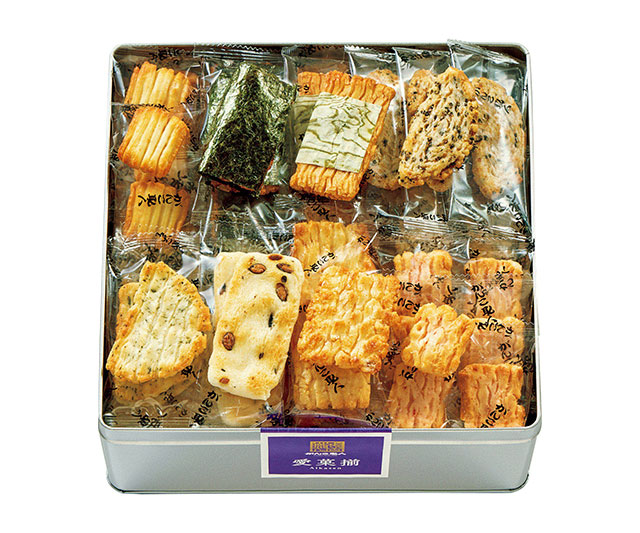 収穫する年の気候によって水分量が変化する国産もち米を、長年の経験により良質な産地から選定。職人たちが丹精込めて創りあげた、パリパリとした食感と香ばしい風味が魅力のおかき8種の詰合せです。